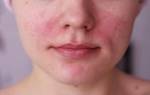 - Аллергический дерматит – на нижней части личика проявляется только в случае реакции на перемену питания. Симптомы: красна или розовая сыпь, кожа вокруг пупырышек также воспаленная, может зудеть, в качестве дополнительных симптомов может появиться температура и потливость.